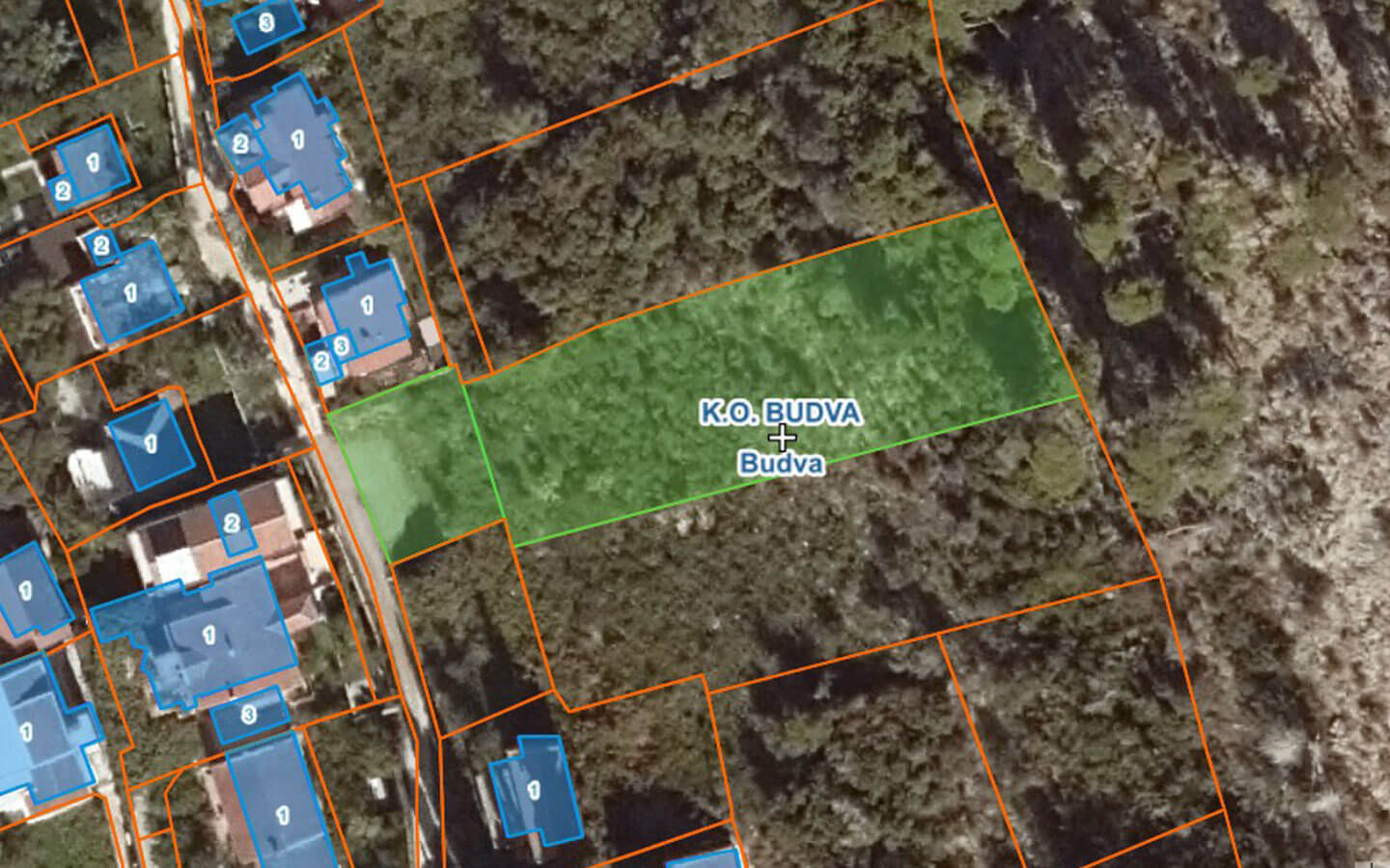 The estate consists of two larger cadastral parcels forming three urban plots, sold exclusively as a whole.