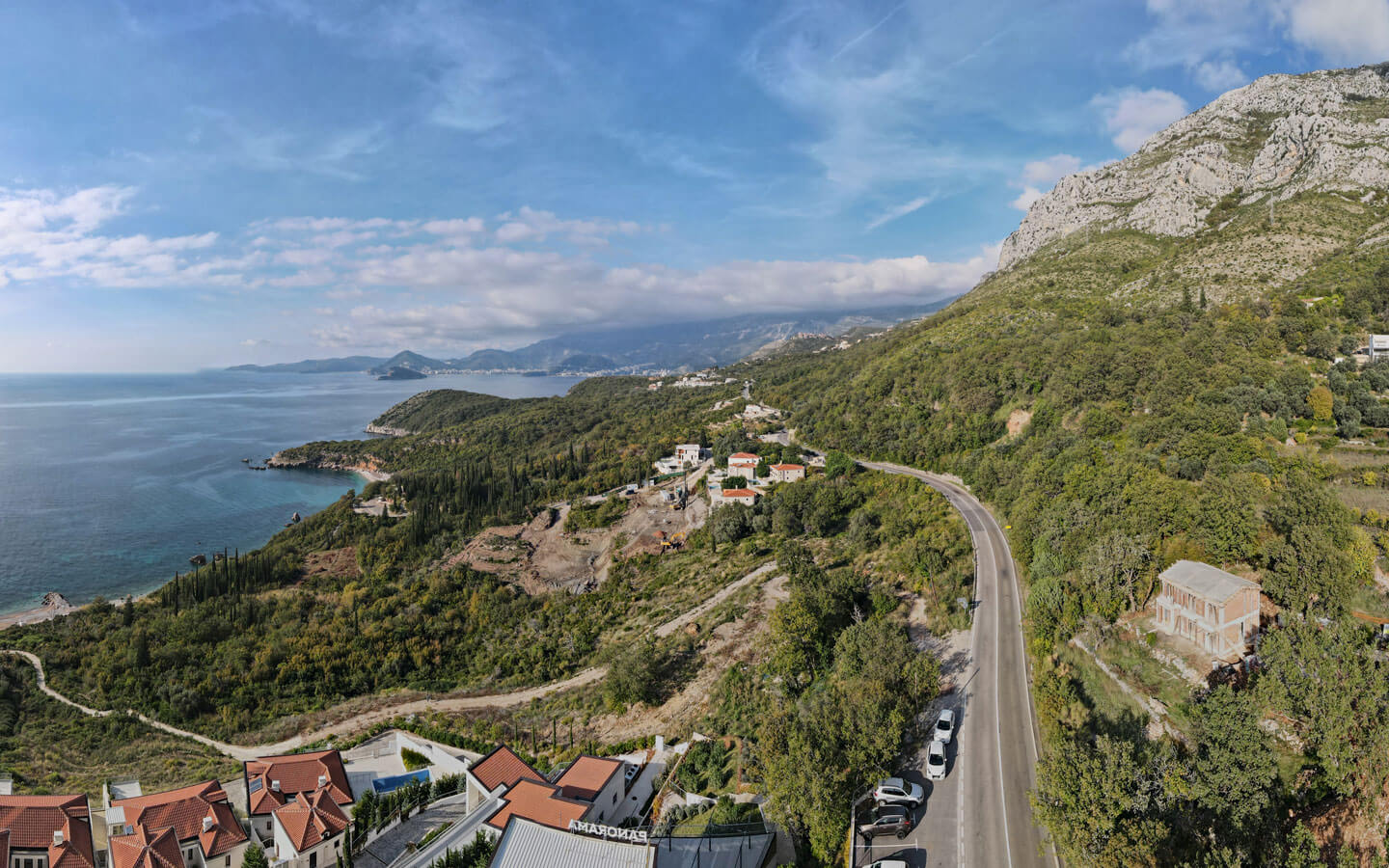 Positioned below the Adriatic Highway and only 300 meters from the beach, this exceptional property offers panoramic views of one of the most beautiful stretches of the Montenegrin coast. The plot enjoys southern orientation, open sea views, and immediate access to all necessary utility connections.