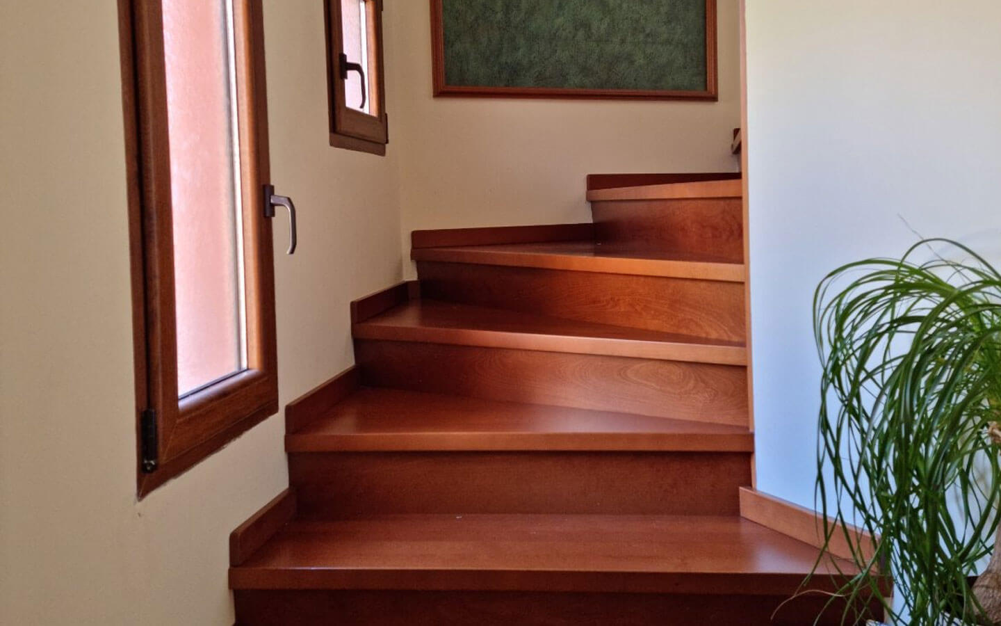 The house is thoughtfully arranged across two levels, combining elegant living spaces with functional design. The main living area is on the first floor, featuring a spacious, light-filled living room with a functional fireplace, a cozy bedroom, and a modern bathroom. The interior is finished with high-quality materials, including natural wenge wood flooring and marble, while custom-made Italian furniture adds a refined and sophisticated touch.
