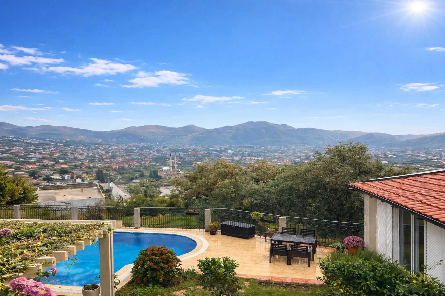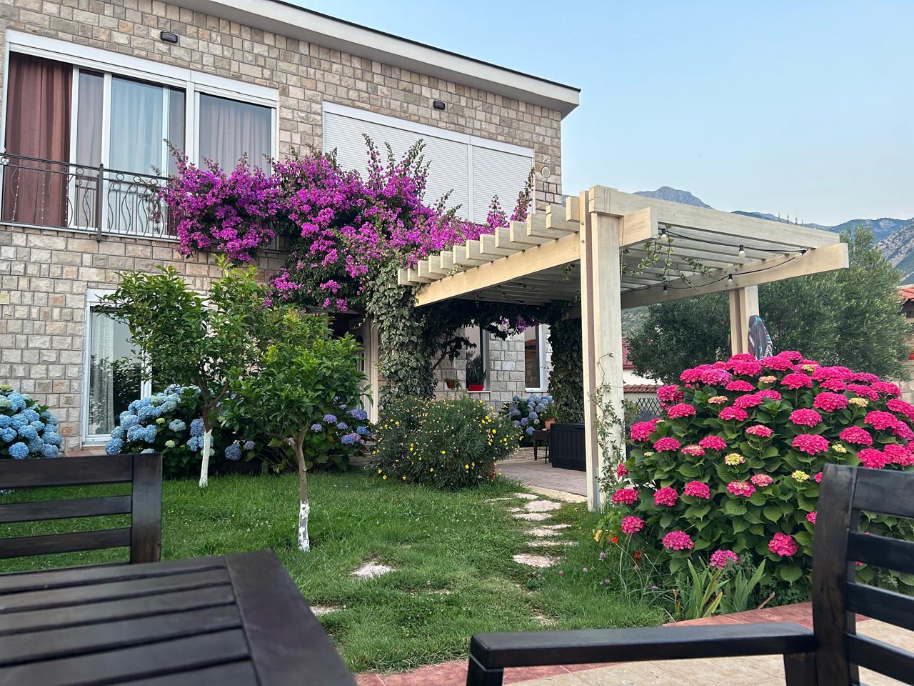 This spacious house is located in Bar, in close proximity to the Old Town, offering open sea views, mountain scenery, and a peaceful residential environment. The property sits on a plot of 832 m², while the house itself has a total area of approximately 240 m² and is arranged over two levels.