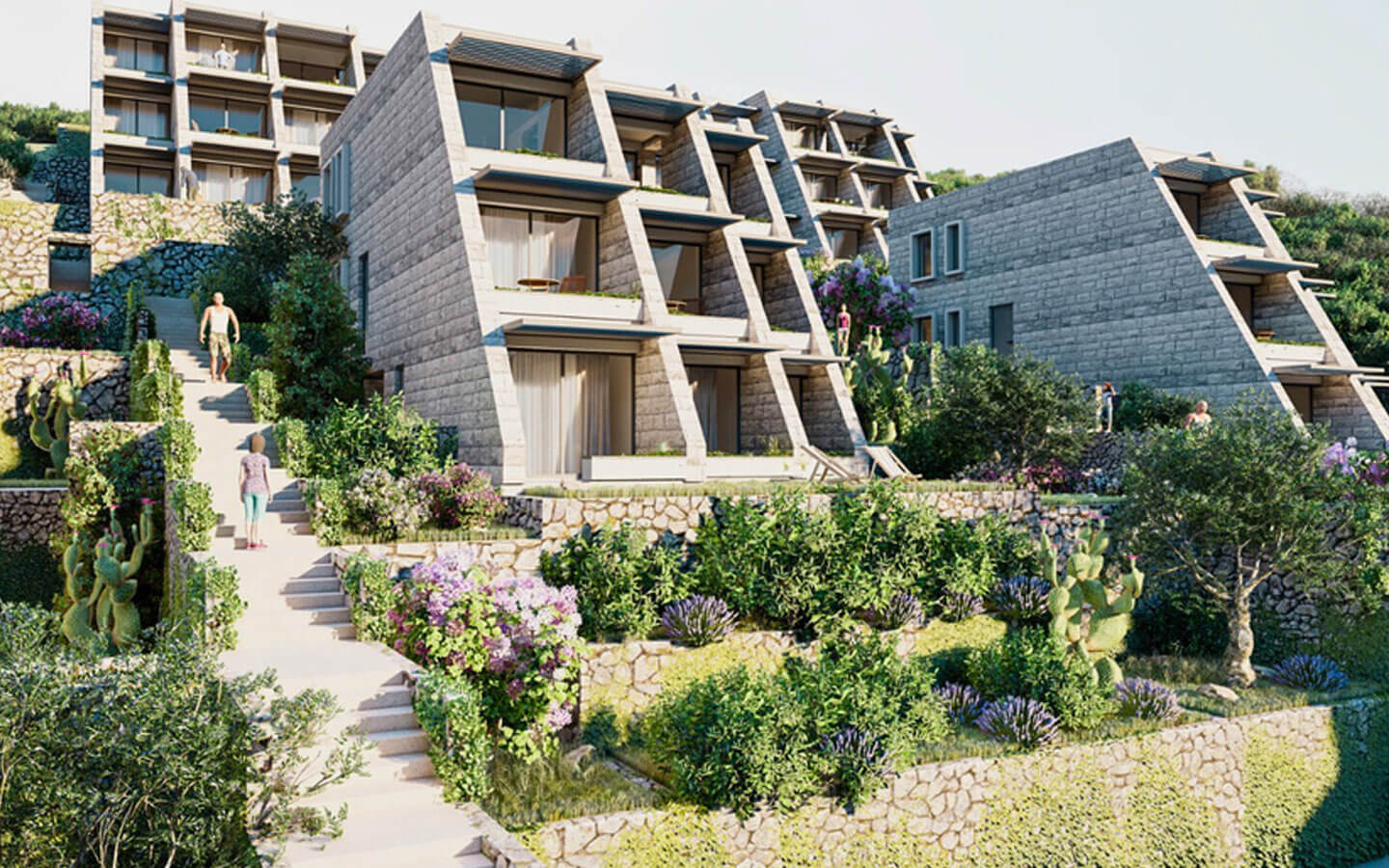 A rare investment opportunity on the Montenegrin coast. Located in the prestigious village of Reževići, between Sveti Stefan and Petrovac, this development plot offers spectacular panoramic sea views and an approved concept for a high-end residential complex.