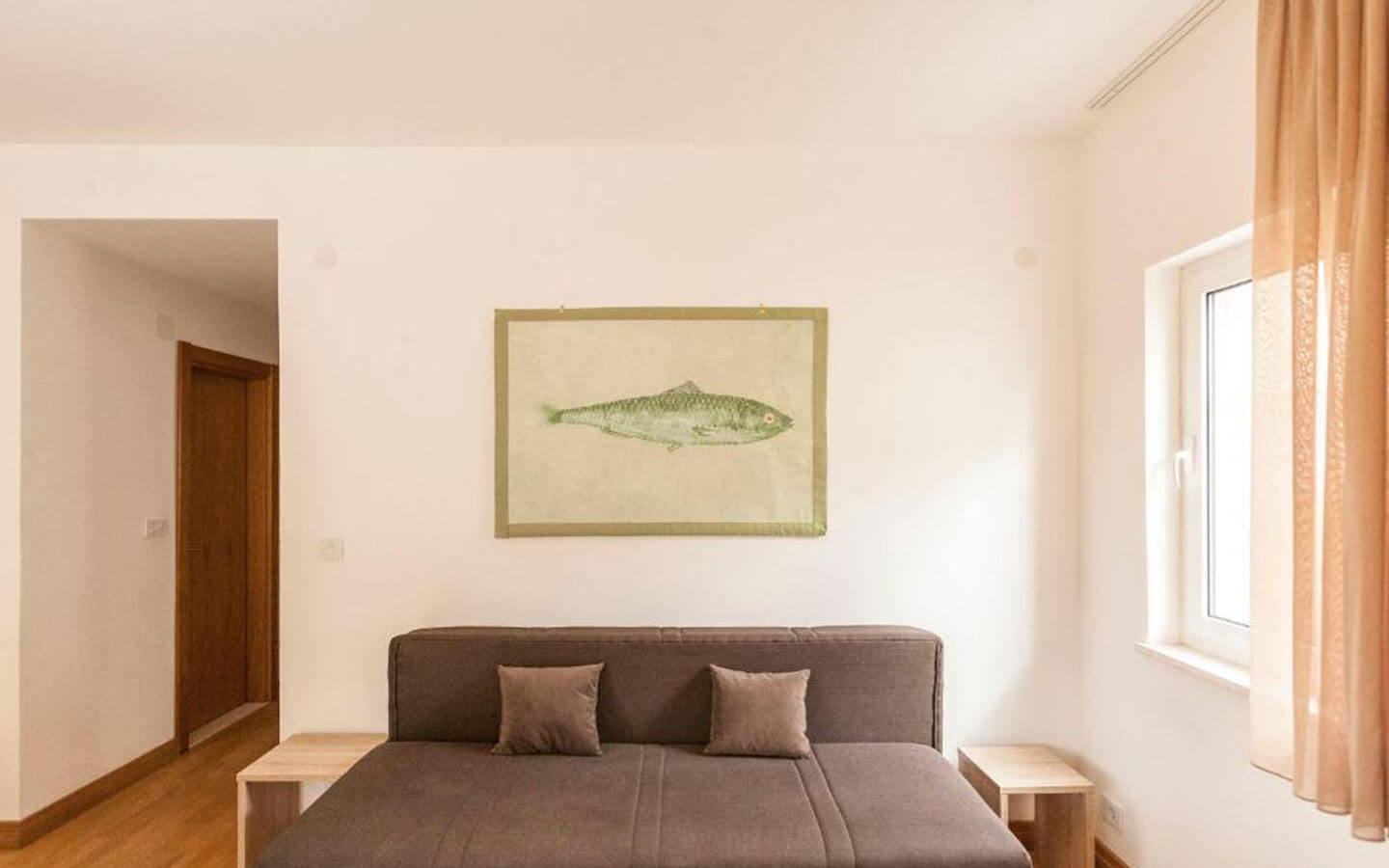 The building has four levels and a total of 12 apartments, currently operated as an apart-hotel. Open sea views are available from the top-floor apartments.