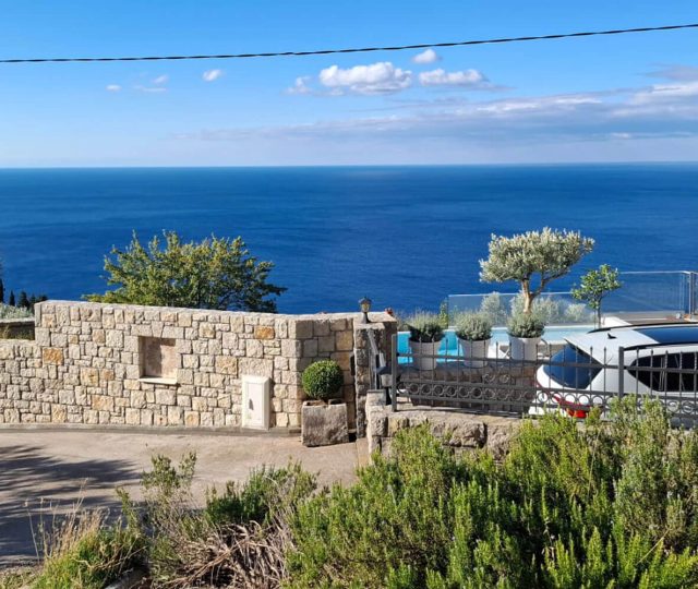 The villa’s elevated position provides a rare combination of privacy, panoramic sea views, and