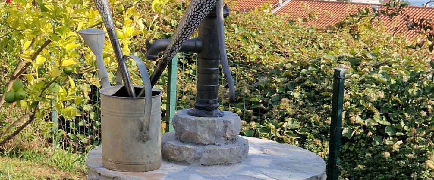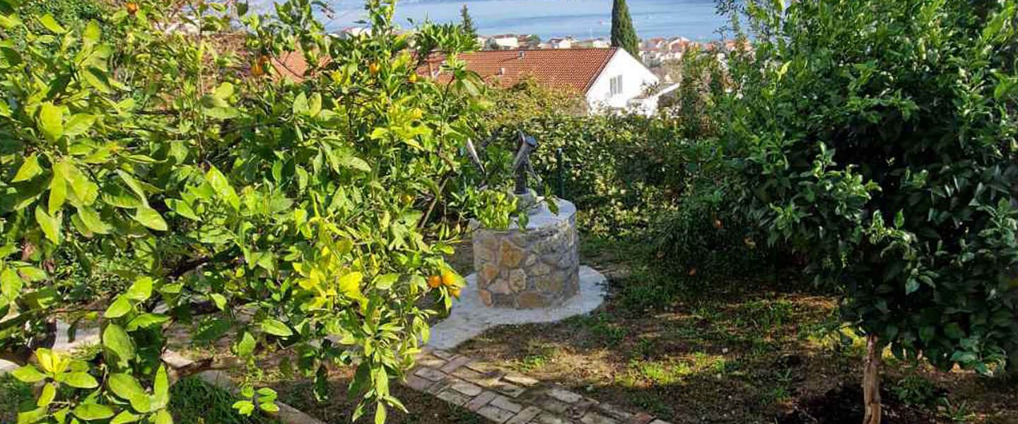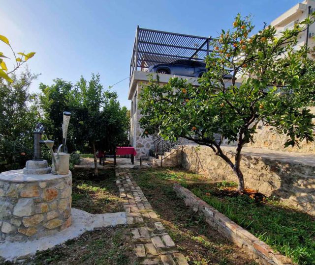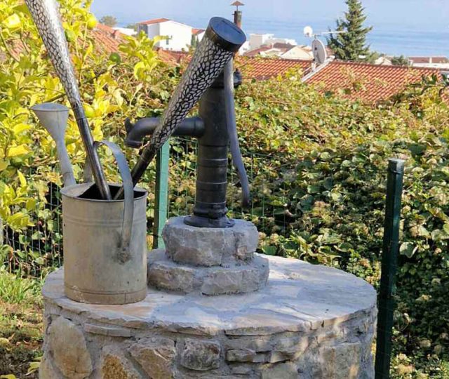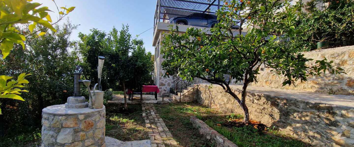 The property is surrounded by a beautiful Mediterranean garden with fruit trees, creating a peaceful and authentic coastal atmosphere. There is a landscaped yard with greenery and natural shade, a traditional stone well that adds charm and historical character, and a terrace with stunning sea views, perfect for relaxing and entertaining with family and friends.