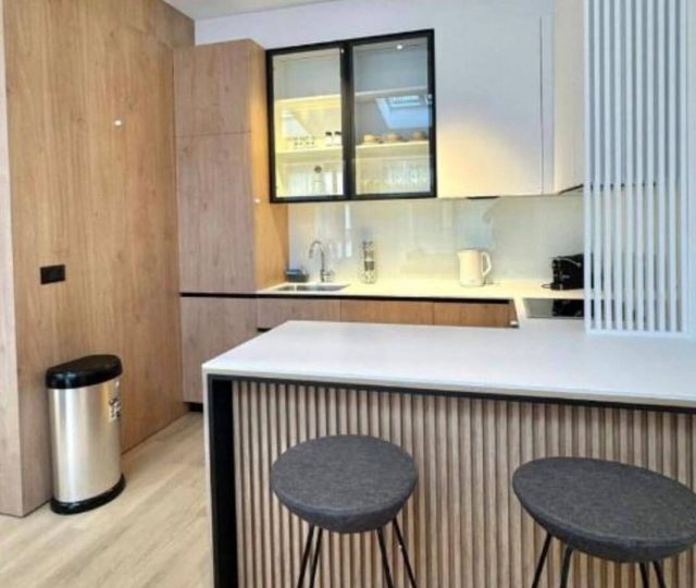 - Spacious Layout with an open-plan living room, dining area, and fully equipped kitchen