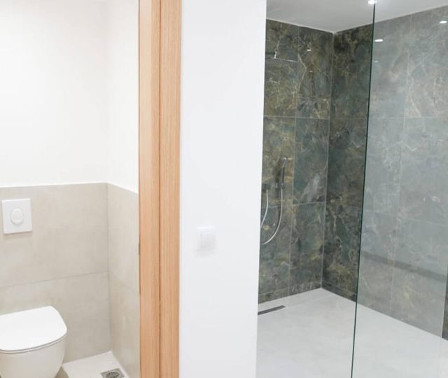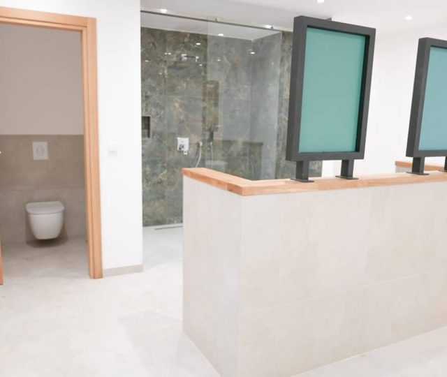 On the lower level (–1) is a fully equipped gym, a modern bathroom and shower area, laundry facilities, a wine cellar, and an additional versatile guest room with a private bathroom. On the upper level are four generously sized master bedrooms, each with an ensuite bathroom and a private terrace. Heated floors and individual climate control are in all rooms.