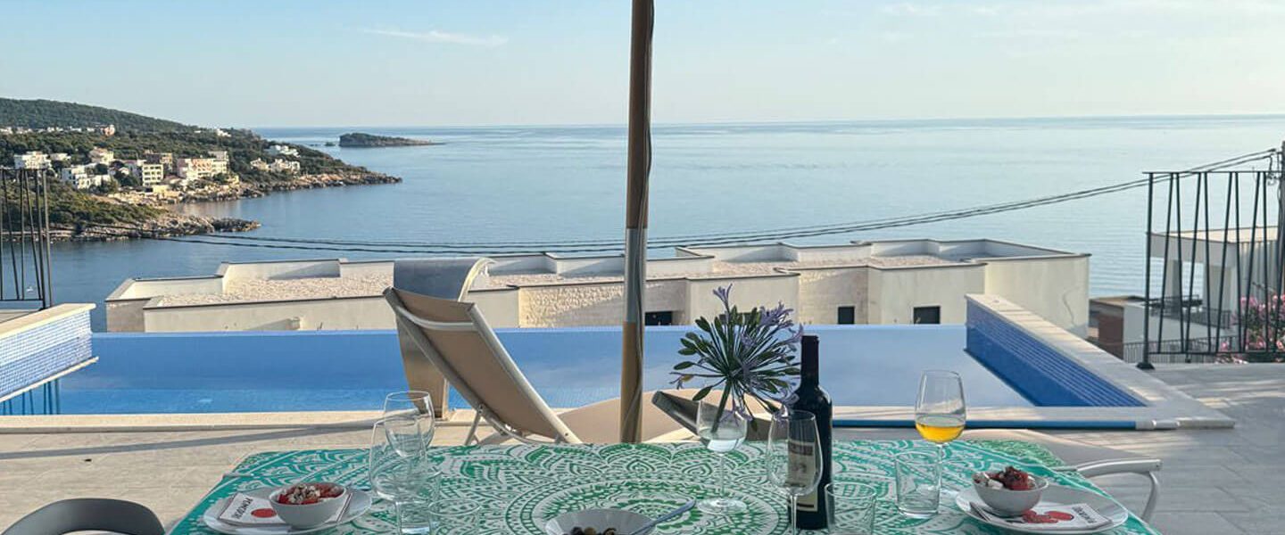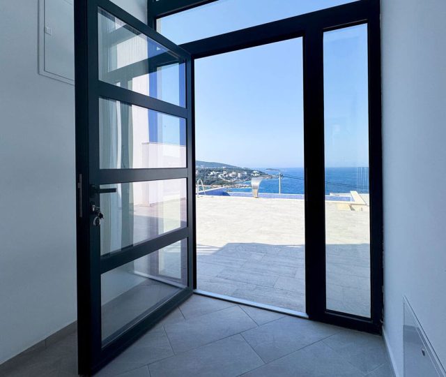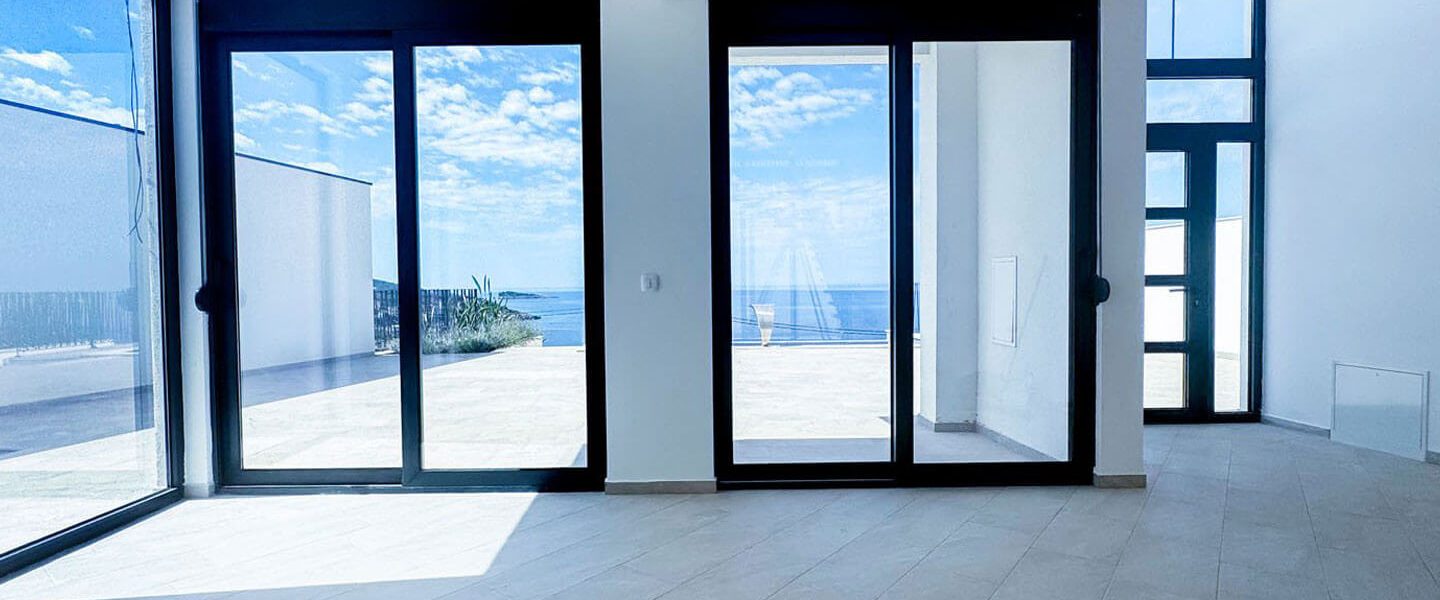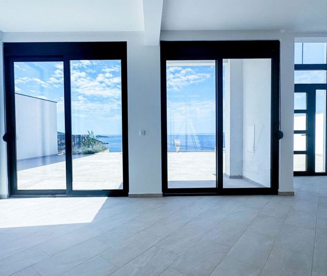 This stunning villa features modern architectural design with 180° panoramic sea views overlooking the Adriatic — the perfect setting to enjoy golden sunsets and open horizons from multiple terraces.