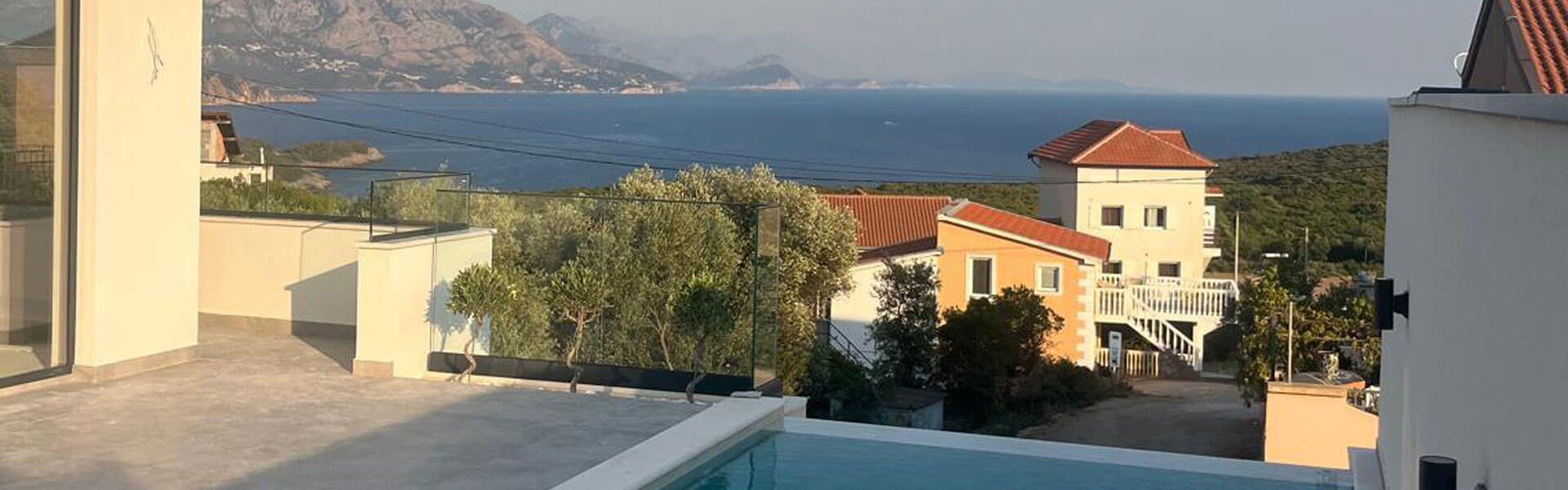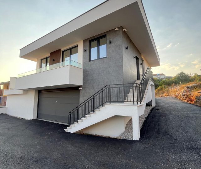 This newly built contemporary villa is located in Krimovica, a peaceful coastal village in the Kotor municipality, perfectly positioned between Budva and Kotor. Designed to the highest construction and technological standards, the villa offers panoramic sea views, a private swimming pool, and a refined modern lifestyle surrounded by nature.