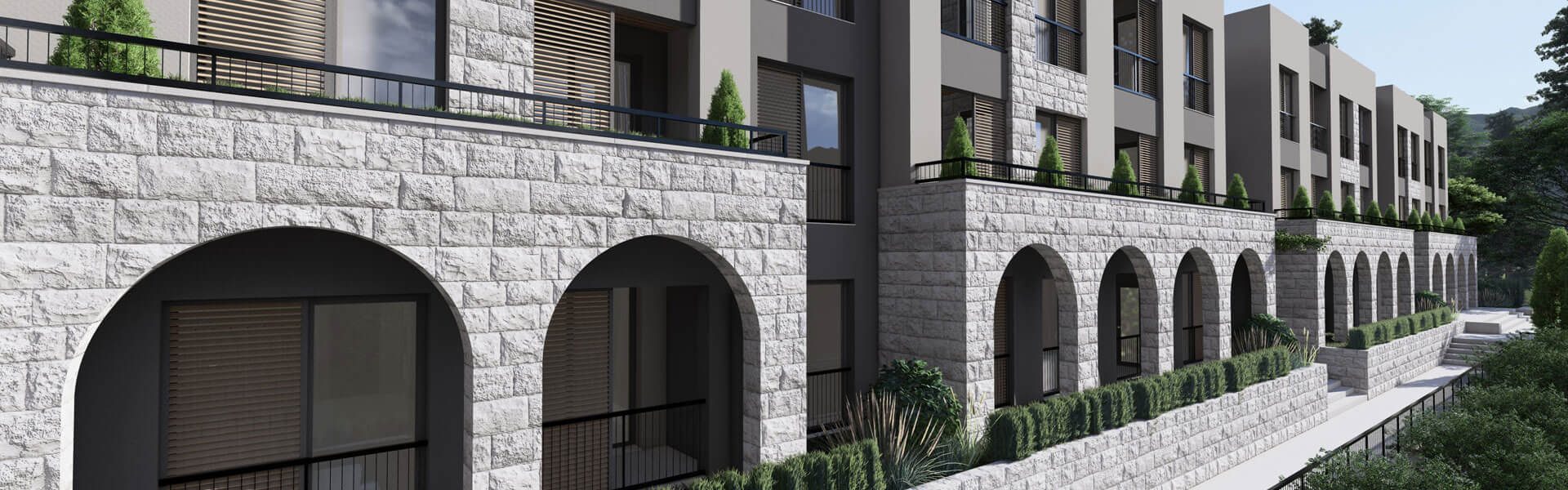 The architectural concept fuses traditional Montenegrin style with contemporary technologies, using eco-friendly, sustainable materials and smart engineering solutions. Apartments feature modern, functional layouts, panoramic windows with views of the sea and mountains, and high-quality finishes that enhance comfort and elegance.