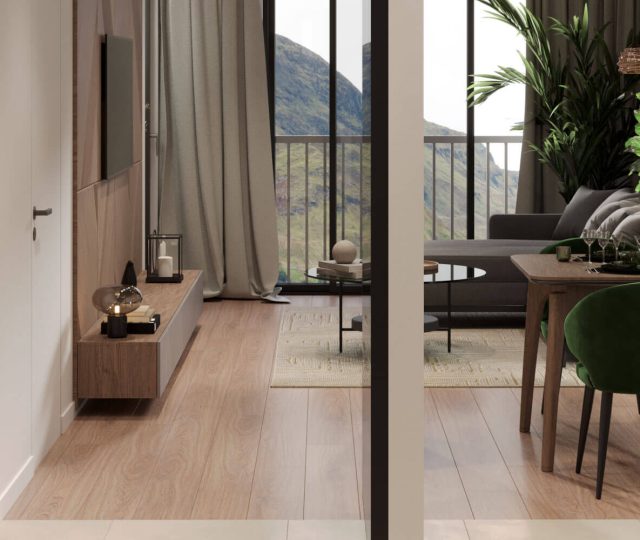 Each apartment is designed to maximize natural light and space, offering terraces with either mountain or sea views.