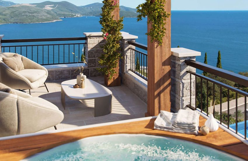 Situated in Herceg Novi, the complex offers a perfect blend of tranquility and accessibility. It’s just 1.7 km from the center of Herceg Novi, 28 km (40 minutes) from Tivat International Airport, and 24 km (30 minutes) from Dubrovnik International Airport. Plus, the renowned Clinique “Igalo Institute,” famous for its healing mud baths and unique treatment programs, is conveniently nearby.