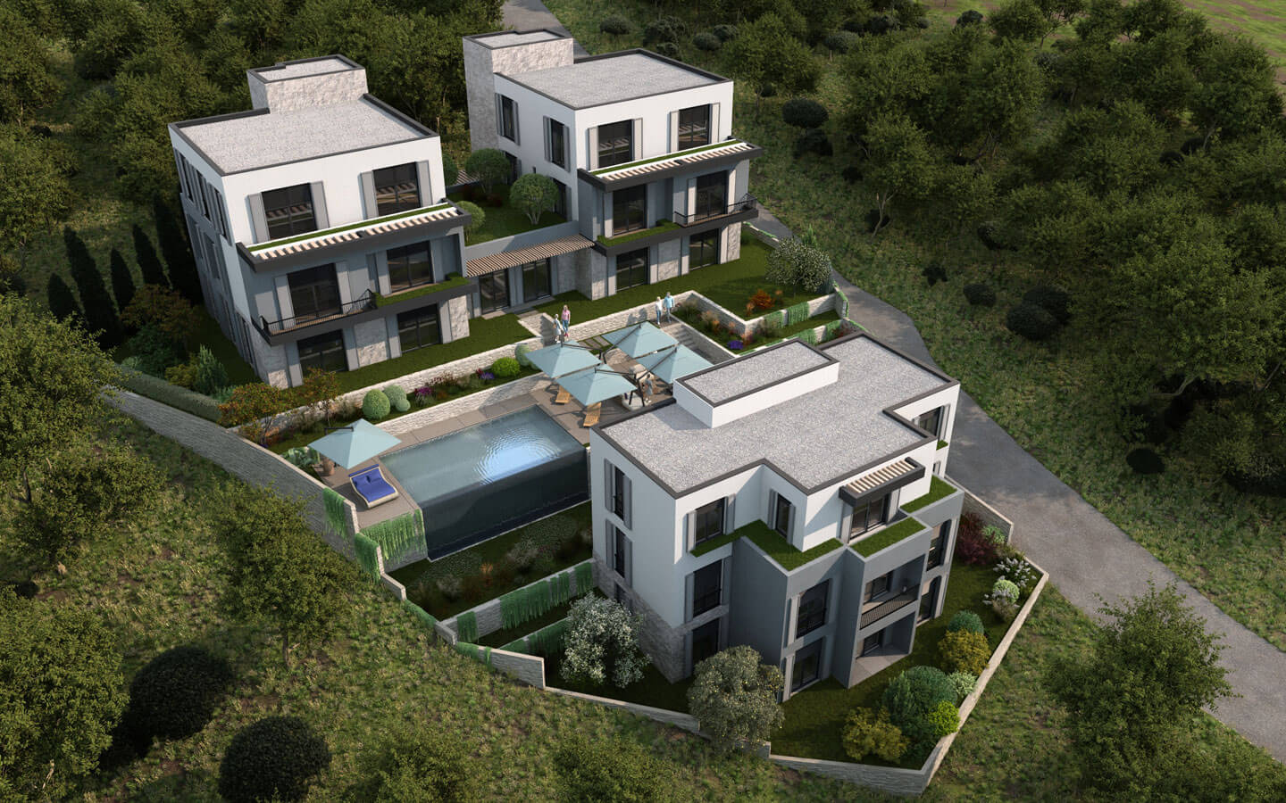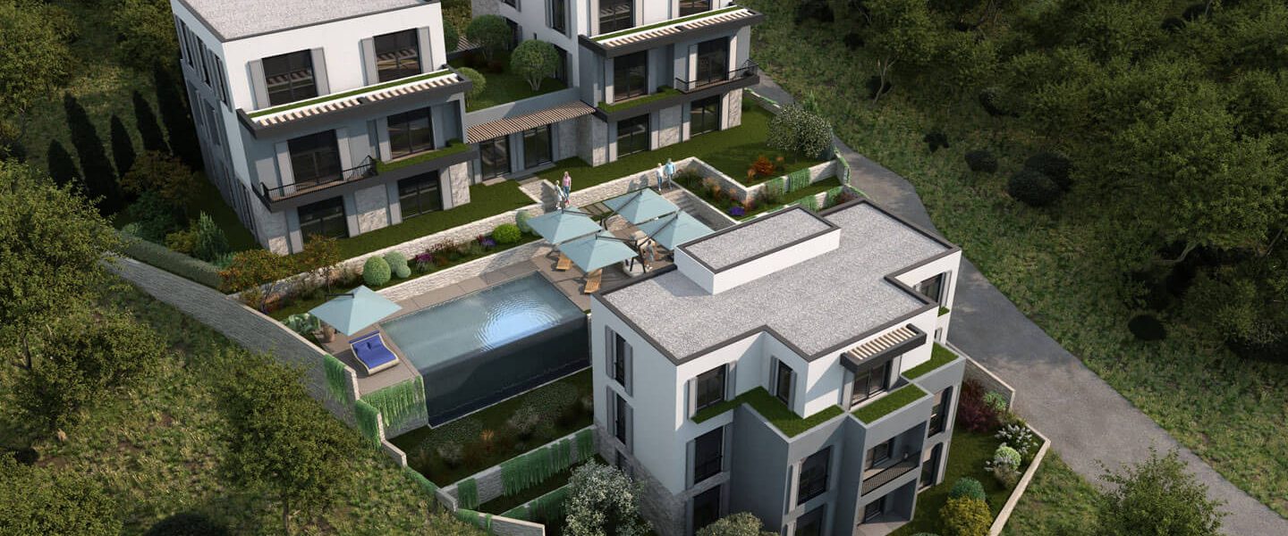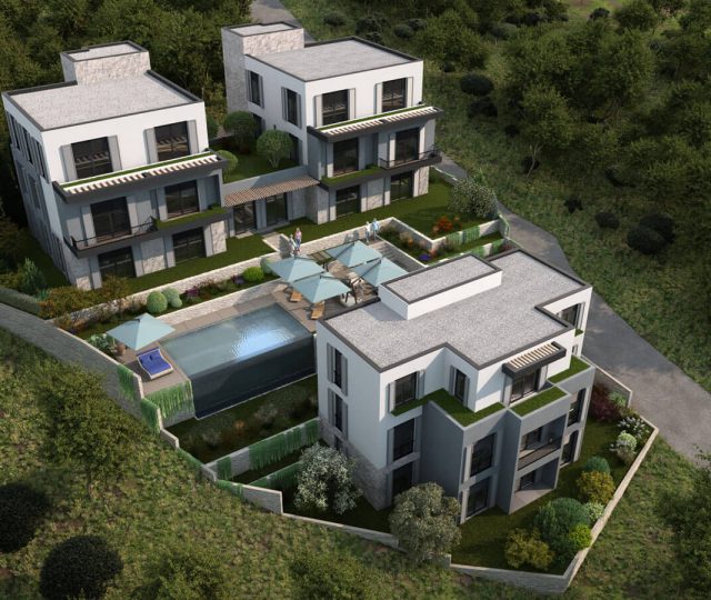 The architectural concept fuses traditional Montenegrin style with contemporary technologies, using eco-friendly, sustainable materials and smart engineering solutions. Apartments feature modern, functional layouts, panoramic windows with views of the sea and mountains, and high-quality finishes that enhance comfort and elegance.