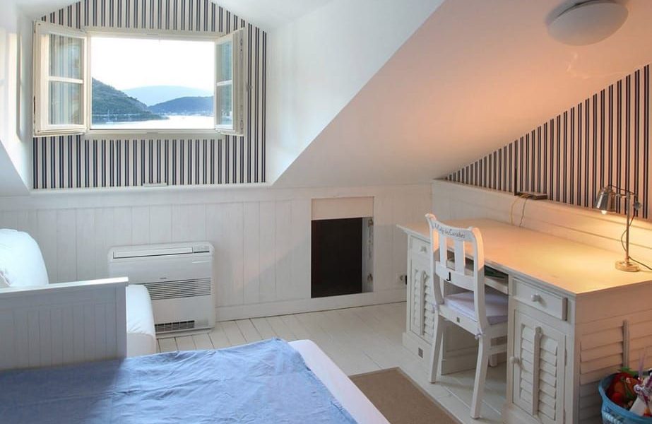 On the second floor, there are two bedrooms and one bathroom. The villa is air-conditioned and additionally, there is underfloor heating in the living room and all bathrooms.